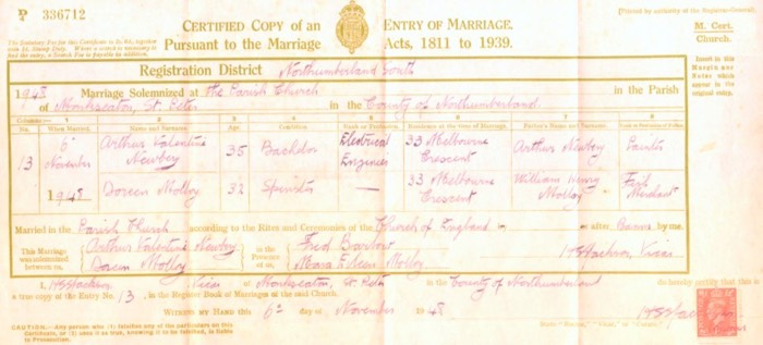 Arthur Newbery-Doreen Molloy